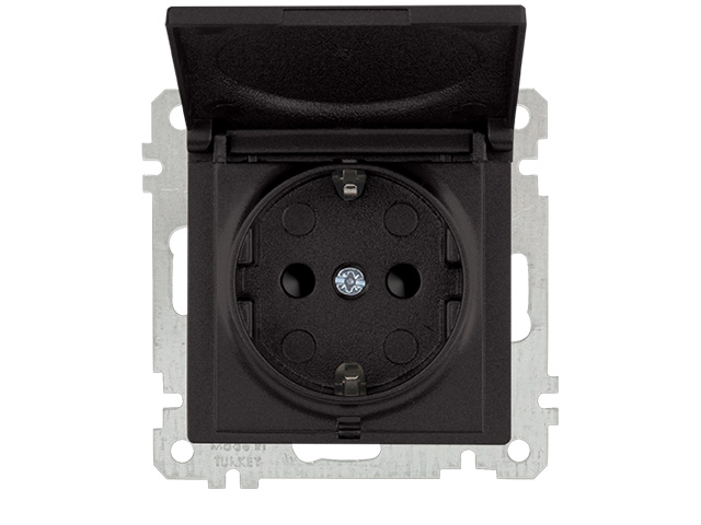 Розетка 1-ая (скрытая, без рамки, с/з, шторки, с крышкой) черная, DARIA, MUTLUSAN (16 A, 250 V, IP 20) купить в Минске: