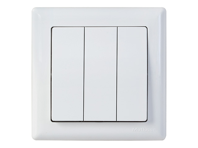 Выключатель 3- клав. (скрытый, пруж. зажим) белый, DARIA, MUTLUSAN (10 A, 250 V, IP 20)