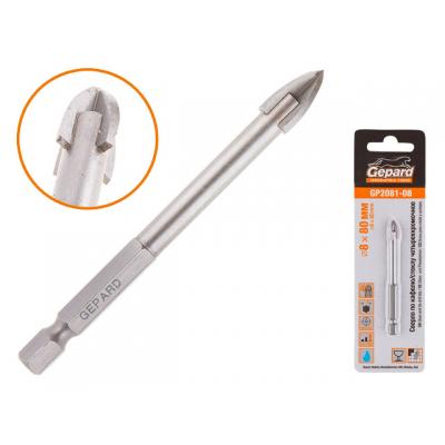 Сверло по кафелю/стеклу 10х100мм четырехкромочное шестигр. GEPARD (GP2081-11) (Impact, по керамической плитке, крестовая пластина)