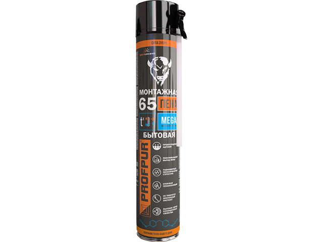 Пена монтажная бытовая всесезонная PROFPUR Mega (870мл) (Выход до 65л)