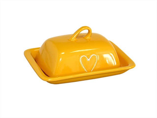 Масленка с крышкой керамическая, серия Мамина сказка, желтая, PERFECTO LINEA