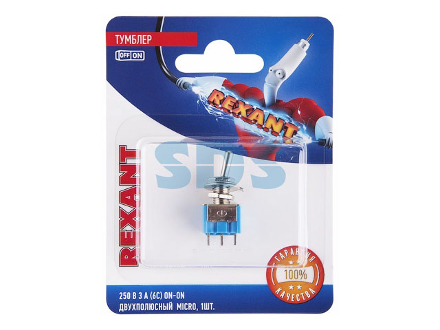 Тумблер 250V 3А (6c) ON-ON двухполюсный Micro (MTS-202) REXANT (в упак. 1шт.)