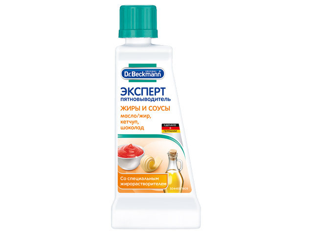 Специальный пятновыводитель для жирных и масляных пятен, пятен соуса, кетчупа и шоколада.