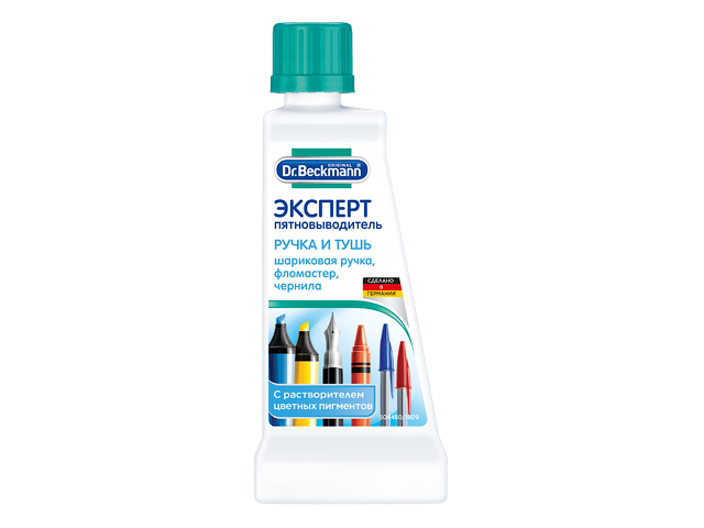 Специальная формула Эксперт пятновыводителя Dr. Beckmann ручка и тушь разработана для удаления пятен, вызванных шариковыми ручками, другими ручками или акварелью. С помощью средства для удаления цветных частиц, цветные пигменты отделяются и удаляются с ткани.