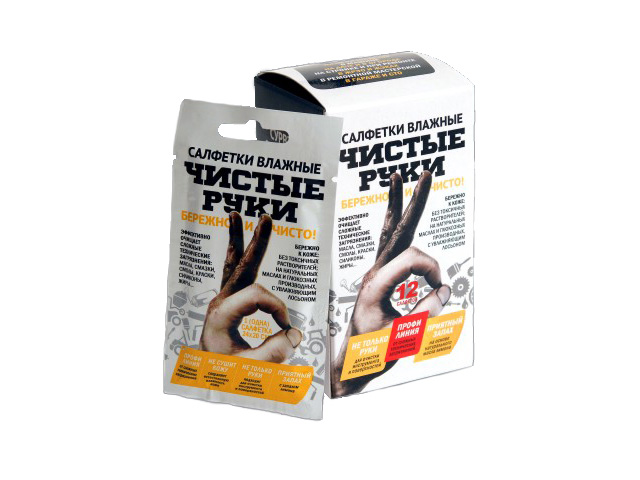 Салфетка техническая влажная (24х20 см) ЧИСТЫЕ РУКИ помогает очистить смазки, масла, густую техническую грязь, силиконы, смолы, деготь, клея, краски, земляные загрязнения. Быстро и тщательно очищает не только руки, но и инструмент, детали, рабочие поверхности.
