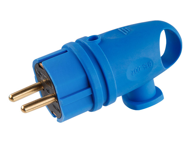 Вилка угловая с ушком (с/з, 16А, 250В) каучук, синяя Юпитер (В16-002) (ЮПИТЕР)