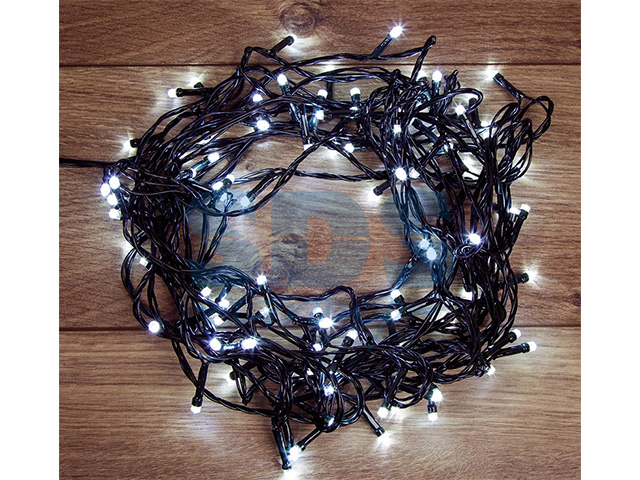 Гирлянда светодиодная универсальная 100 LED белые 10 м с контроллером (Применяется для эксплуатации в помещении. Класс защиты 3; IP44) (NEON-NIGHT)