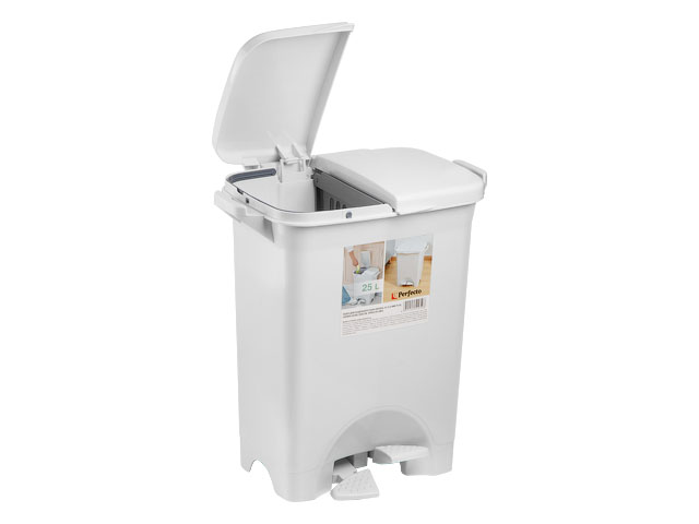 Ведро для раздельного сбора мусора с педалью, 25 л, KLINKO PLUS, снежно-белое,пластм.,PERFECTO LINEA (с педалью)