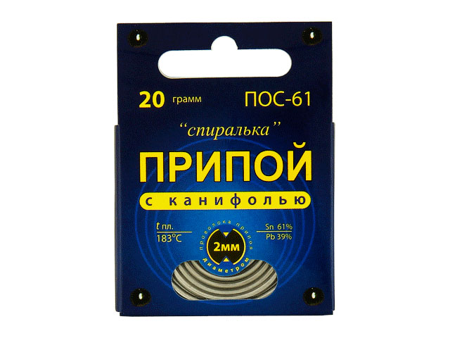 Припой ПОС 61, спираль, с канифолью 20г. Коннектор (Проволока припоя диаметром 2 мм.)