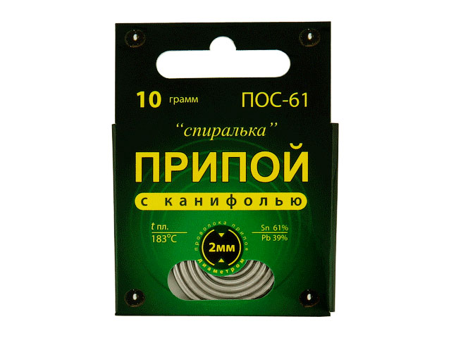 Припой ПОС 61, спираль, с канифолью 10г. Коннектор (Проволока припоя диаметром 2 мм.) купить в Минске:
