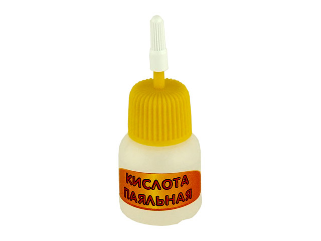 Кислота паяльная- высокоактивный флюс для пайки. Применяется для пайки углеродистых и низколегированных сталей, меди, никеля и их сплавов. Обладает высочайшими флюсующими свойствами. Остатки флюса имеют остаточную активность и со временем поверхность пайки закисает. Удаление остатков можно производить с помощью влажной тряпки.