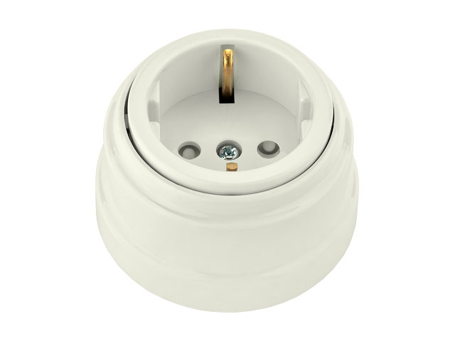 Розетка 1-ая (открытая, с/з, з/ш) бежевая, Ретро, BYLECTRICA (без монтажной панели)