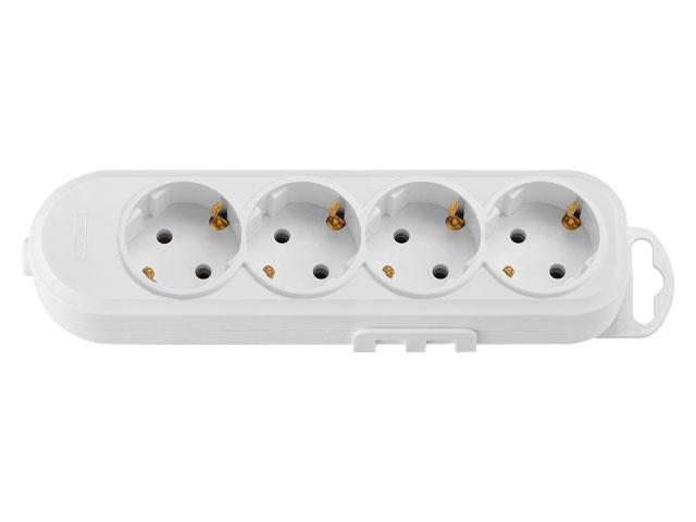 Розетка 4-ая переносная (с/з, 16А, 250В) белая, BYLECTRICA ( с креплениемк стене)