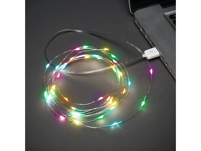 Гирлянда состоит из тонкого провода длиной 2 метра, с расположенным на нем 20 разноцветными долговечными светодиодами.