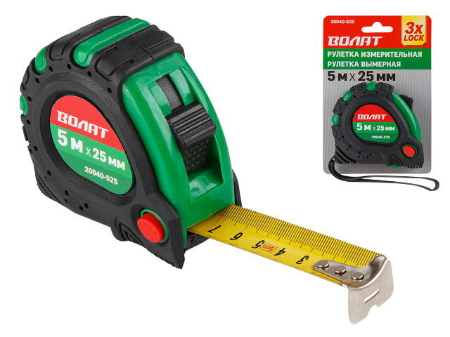 Рулетка 5м/25мм обрезин. корп. ВОЛАТ (3 мех. фиксации, ABS+TPR)