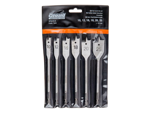 Набор сверл перьевых по дереву 6 шт. GEPARD (GP0415-6) (Impact, перовое)