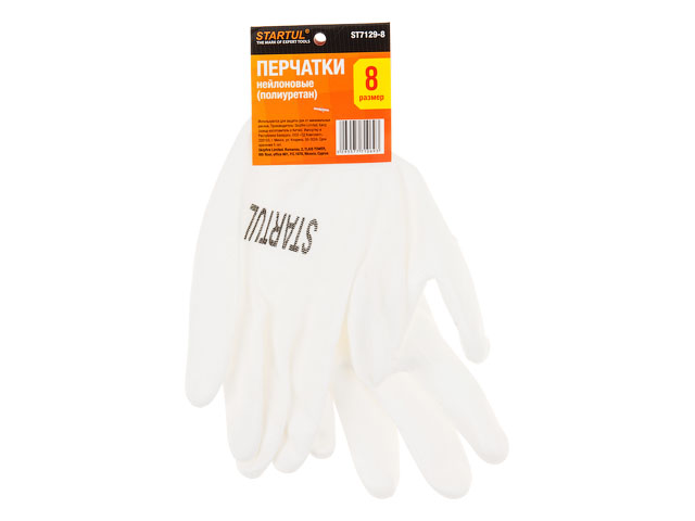 Перчатки нейлон, полиуретан. покрытие, 9 р-р, белые STARTUL