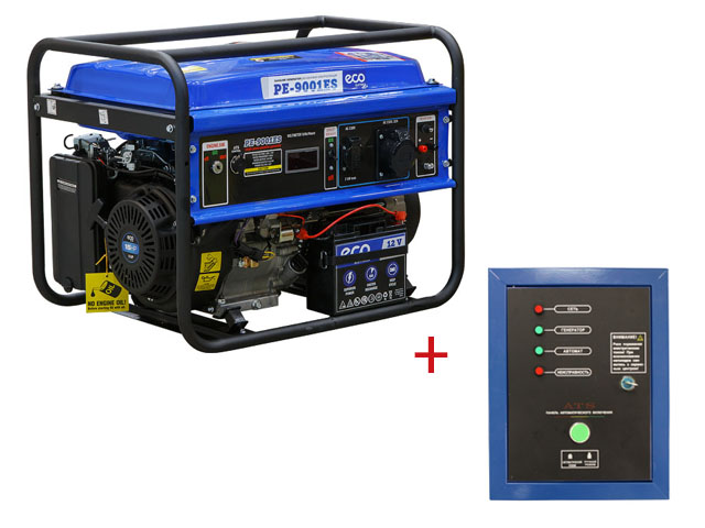 Электростанция (генератор бензиновый) ECO PE-9001ES АКЦИЯ + Блок автоматики ECO (электростарт, 6,5 кВт, 220 В, автозапуск*, бак 25.0 л, вес 75 кг)