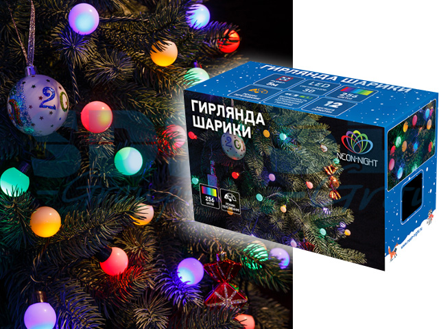 Гирлянда "Мультишарики" d30мм 5м, темно-зеленый ПВХ 25 диодов, цвет RGB (Лидер продаж! Класс защиты 2; IP20; Тип питания: 220В) (NEON-NIGHT)