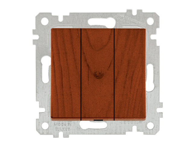 Выключатель 3-клав. (скрытый, без рамки, пруж. зажим) вишня, RITA, MUTLUSAN (10 A, 250 V, IP 20)