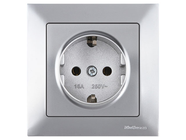 Розетка 1-ая (скрытая, с/з) серебро, DARIA, MUTLUSAN (16 A, 250 V, IP 20) купить в Минске: