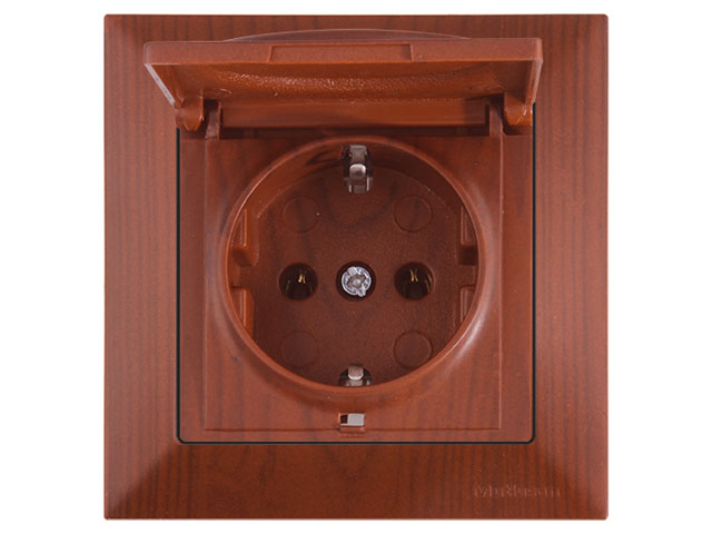 Розетка 1-ая (скрытая, с/з, с крышкой) вишня, DARIA, MUTLUSAN (16 A, 250 V, IP 20) купить в Минске: