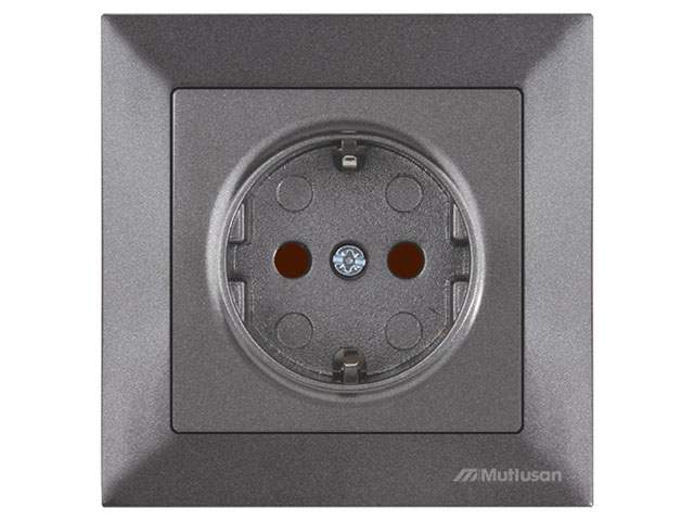 Розетка 1-ая (скрытая, с/з, шторки) дымчатая, DARIA, MUTLUSAN (16 A, 250 V, IP 20)
