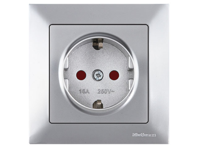 Розетка 1-ая (скрытая, с/з, шторки) серебро, DARIA, MUTLUSAN (16 A, 250 V, IP 20) купить в Минске: