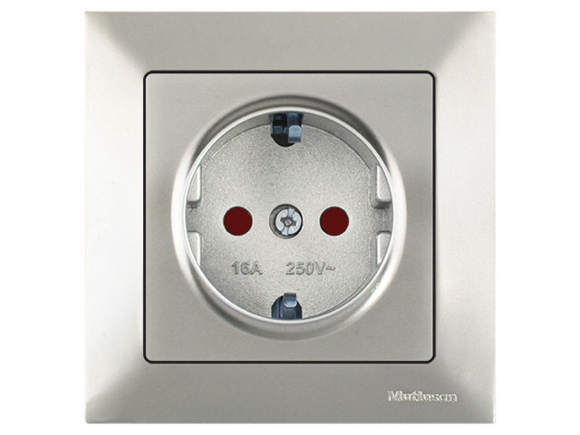 Розетка 1-ая (скрытая, с/з, шторки) титан, DARIA, MUTLUSAN (16 A, 250 V, IP 20) купить в Минске: