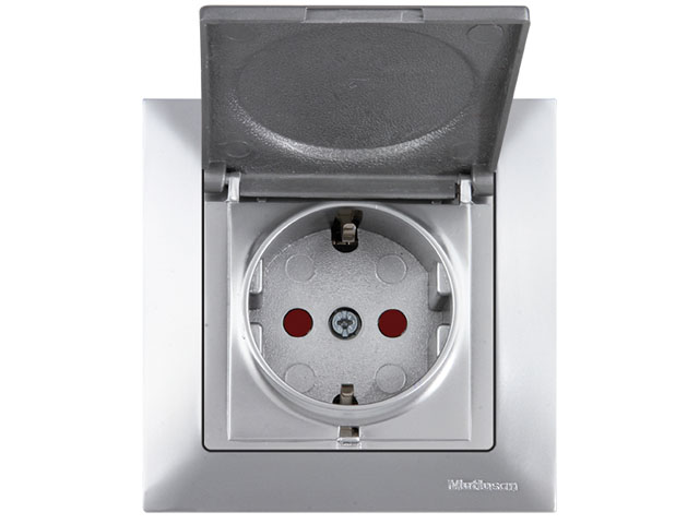 Розетка 1-ая (скрытая, с/з, шторки,с крышкой) серебро, DARIA, MUTLUSAN (16 A, 250 V, IP 20) купить в Минске: