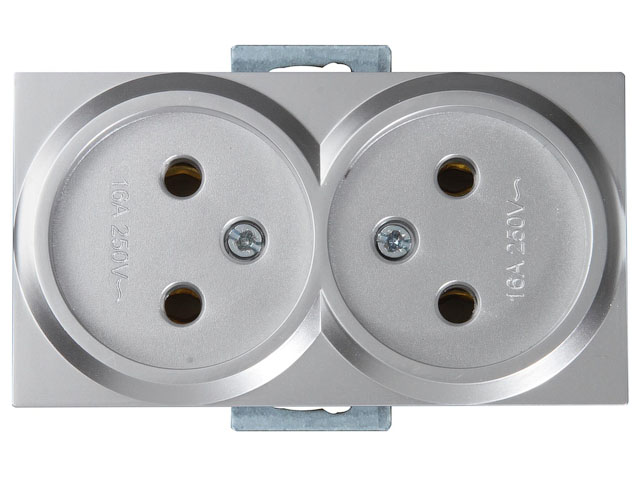 Розетка 2-ая (скрытая, б/з) серебро, RITA, MUTLUSAN (16 A, 250 V, IP 20) купить в Минске:
