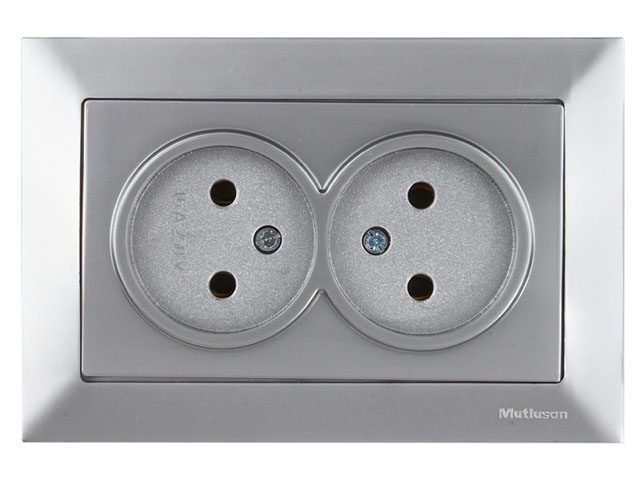 Розетка 2-ая (скрытая, б/з, керамика) серебро, DARIA, MUTLUSAN (10 A, 250 V, IP 20)