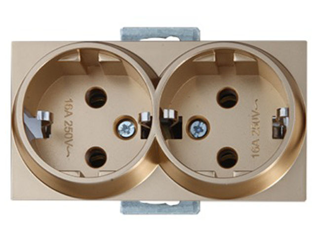 Розетка 2-ая (скрытая, с/з) золото, RITA, MUTLUSAN (16 A, 250 V, IP 20) купить в Минске: