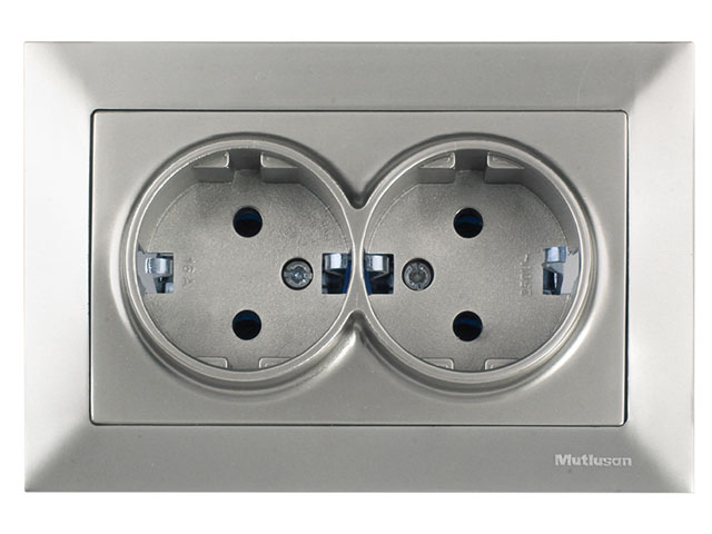 Розетка 2-ая (скрытая, с/з) титан, DARIA, MUTLUSAN (16 A, 250 V, IP 20) купить в Минске: