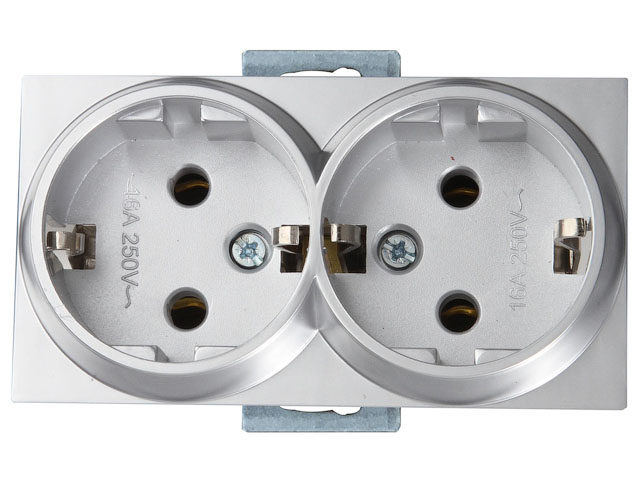 Розетка 2-ая (скрытая, с/з, керамика) серебро, RITA, MUTLUSAN (16 A, 250 V, IP 20) купить в Минске: