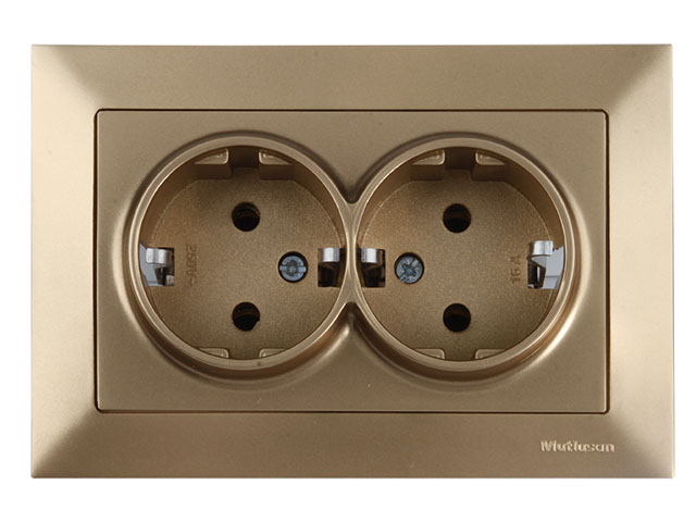 Розетка 2-ая (скрытая,с/з, керамика) злолото, DARIA, MUTLUSAN (16 A, 250 V, IP 20)