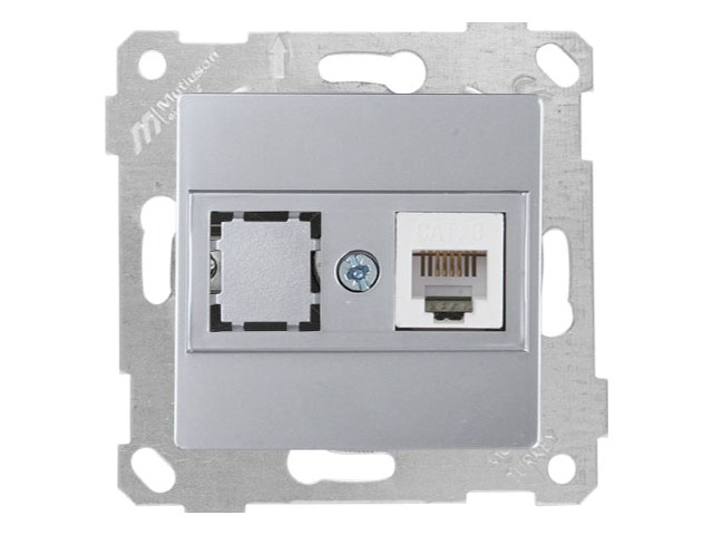 Розетка телефонная 1хRJ12 (скрытая, без рамки) серебро, RITA, MUTLUSAN