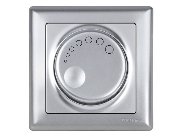 Выключатель поворотный с подсветкой (диммер) (скрытый, винт. зажим, 600Вт) серебро, DARIA, MUTLUSAN (220VAC, 60 - 600VA, 50 Hz, IP20)
