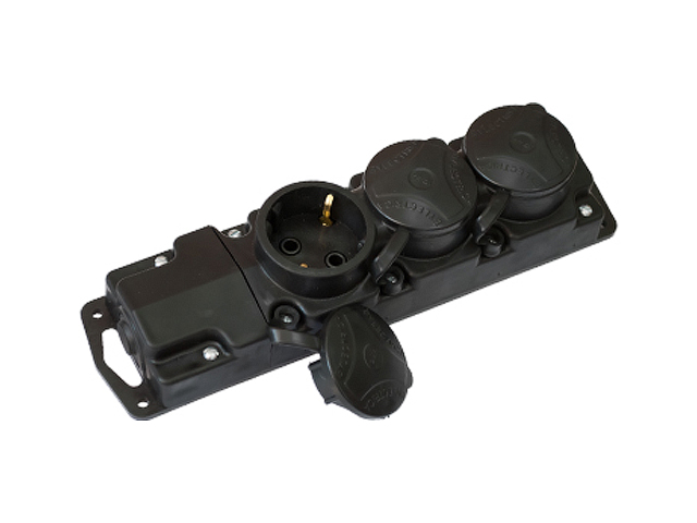 Розетка 3-ая переносная (с/з, 16А, 250В, з/ш, брызг. защ.) черная, BYLECTRICA