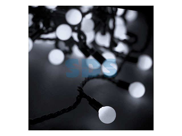 Гирлянда "LED - шарики" представляет собой электрический шнур, имеющий длину 10 или 20 м, на котором располагаются сверх яркие светодиодные лампы, изготовленные в виде шариков с диаметром 1,3-4,5см. Светодиоды по сравнению с миниатюрными лампами накаливания имеют целый ряд существенных преимуществ. Их отличает чистое и яркое свечение, огромный ресурс, прочность, незначительное потребление энергии, надежность. Гирлянда "LED - шарики" великолепно подходит для украшения витрин магазинов, помещений, больших интерьерных и уличных елок, превращая их в настоящие произведения искусства. Благодаря хорошей влагозащищенности гирлянду можно использовать как в помещении, так и на улице.Данная гирлянда имеет длину 10м. на которой равномерно расположены 80 шариков диаметром 23мм с цветом свечения белый.