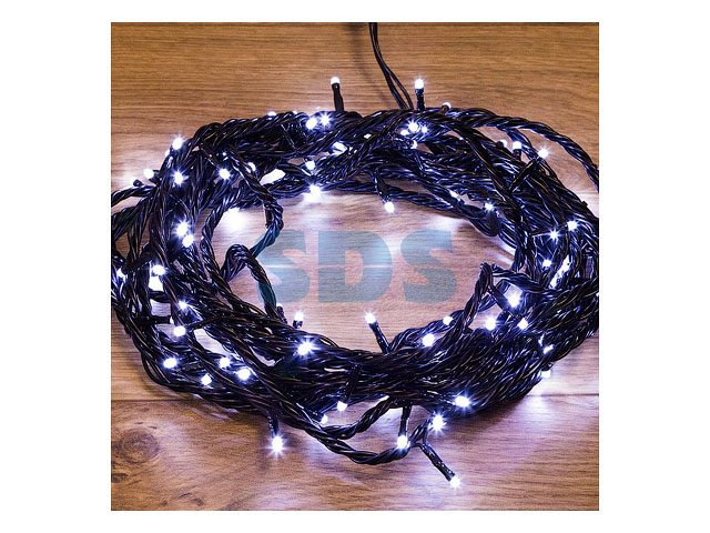 Гирлянда "Твинкл Лайт" 10 м, черный ПВХ, 100 диодов, цвет белый (Применяется для эксплуатации в помещении. Класс защиты 2; IP20; Тип питания: 220 В) (