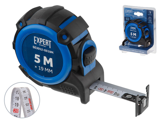 Рулетка 5м/19мм EXPERT STARTUL (SE3012-0519M) (Двухсторонняя шкала нанесения, нейлоновое покрытие, усиленный магнитный двухсторонний зацеп)