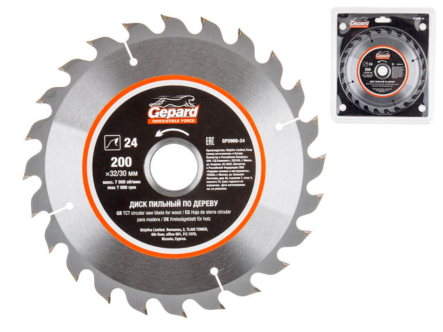 Диск пильный 200х32/30 мм 24 зуб. по дереву GEPARD (твердоспл. зуб)