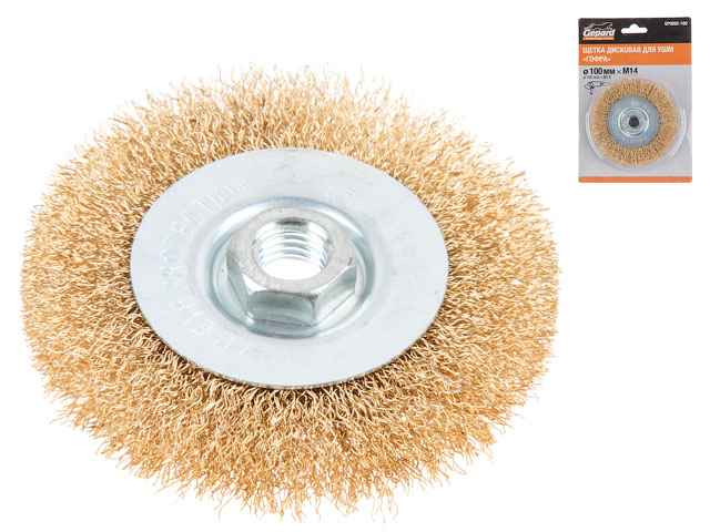 Щетка дисковая гофр.100мм/M14 GEPARD (GP0892-100) (плоская, для УШМ, в блистере)
