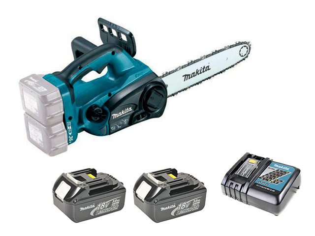 Аккум. пила цепная MAKITA DUC 302 Z шина 30 см (12"), 3/8, 1.1 мм + АКЦИЯ (2 аккумулятора, зарядное) (18+18 В, 2 акк.BL1830B, 3.0 А/ч, Li-Ion, зар. DC