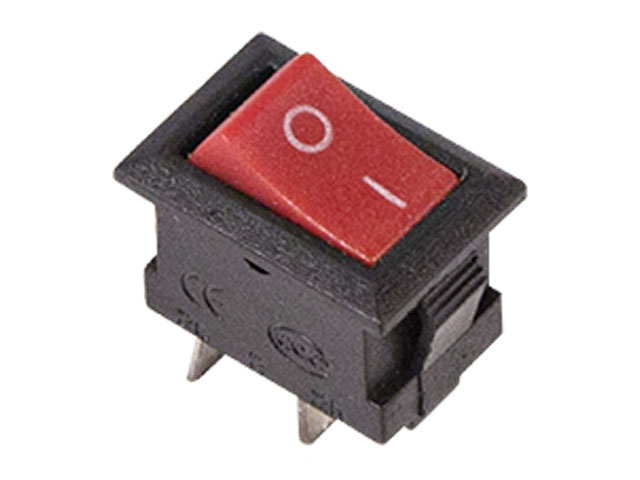 Выключатель клавишный 250V 3А (2с) ON-OFF красный Micro предназначен для коммутации электрических цепей переменного тока напряжением до 250В. Клавишные (Рокерные) выключатели применяются в качестве комплектующих изделий различного электрооборудования (в сетевых фильтрах и удлинителях, аудио-оборудовании, блоках питания, электроустановках на различных производствах, автомобилях, и многих других местах). Такой клавишный переключатель имеет два положения. Принцип действия основан на перемещении клавиши в одну из позиций. Для переключения в нужное положение требуется приложить некоторые усилия на клавишу. Монтаж осуществляется без применения винтов на плоских панелях толщиной от 0.8мм до 3мм. Подключение контактов осуществляется плоской клеммой, либо с помощью пайки.