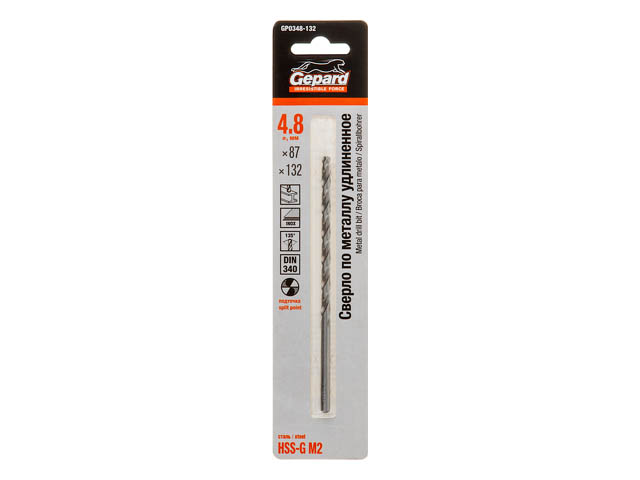 Сверло по металлу ц/х 4.8х87х132 мм удлиненное HSS-G GEPARD