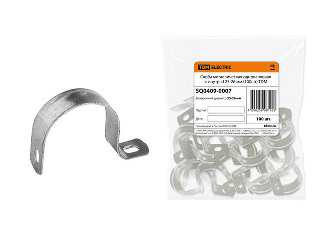 Скоба металлическая однолапковая с внутр. d 25-26 мм (уп 100 шт) TDM купить в Минске: