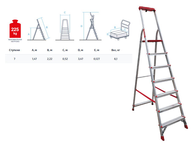 Лёгкая высокопрочная стремянка для интенсивного использования. Инструмент всегда под рукой.