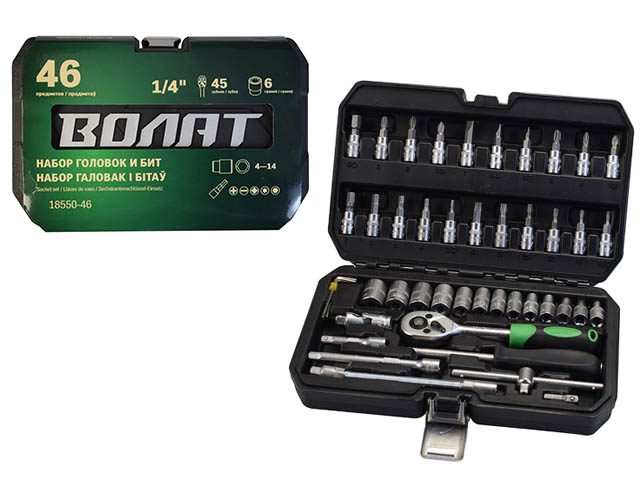 Головка торцевая 1/4": 4, 4.5, 5, 5.5, 6, 7, 8, 9, 10, 11, 12, 13, 14 мм;